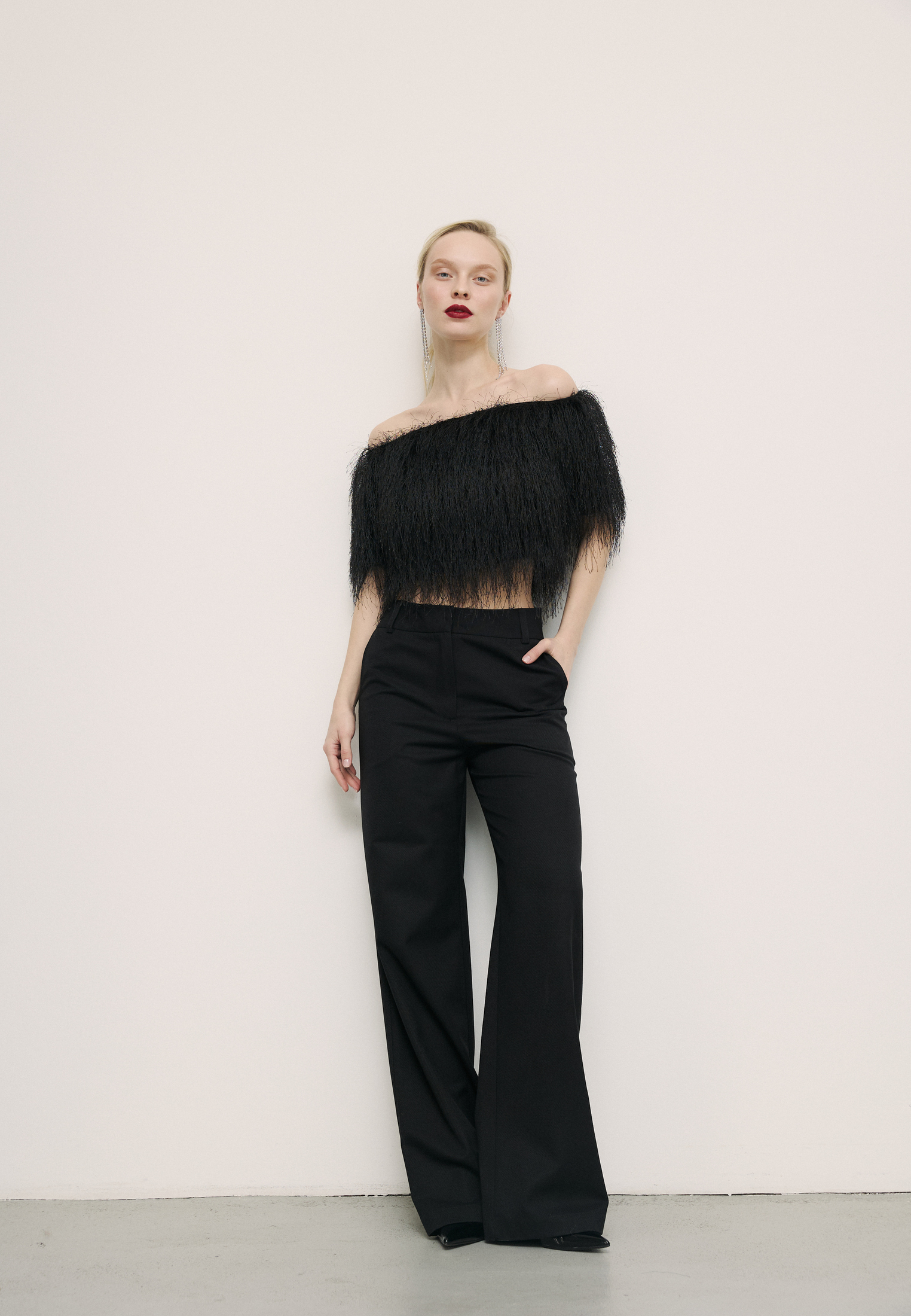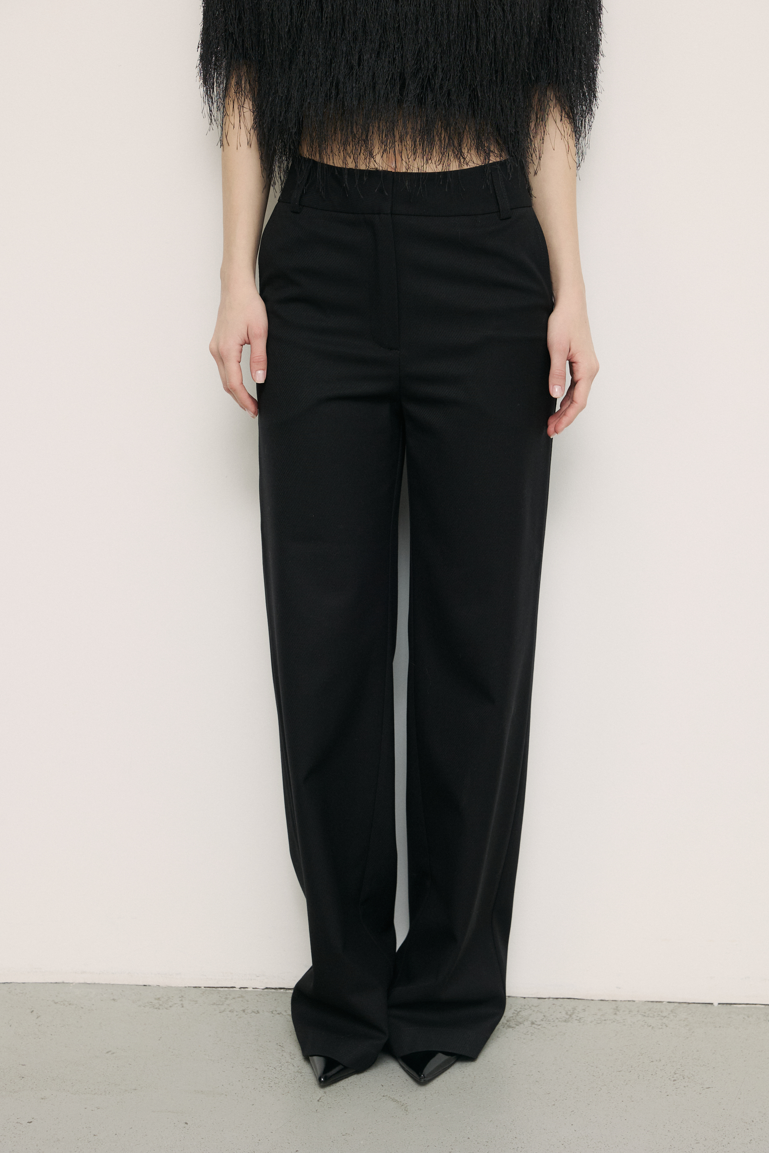 Черные брюки прямого кроя. Отшиты по отработанному лекалу, которое идеально сидит по фигуре и визуально удлиняет ноги. Элегантный и универсальный силуэт для ваших ярких дней.