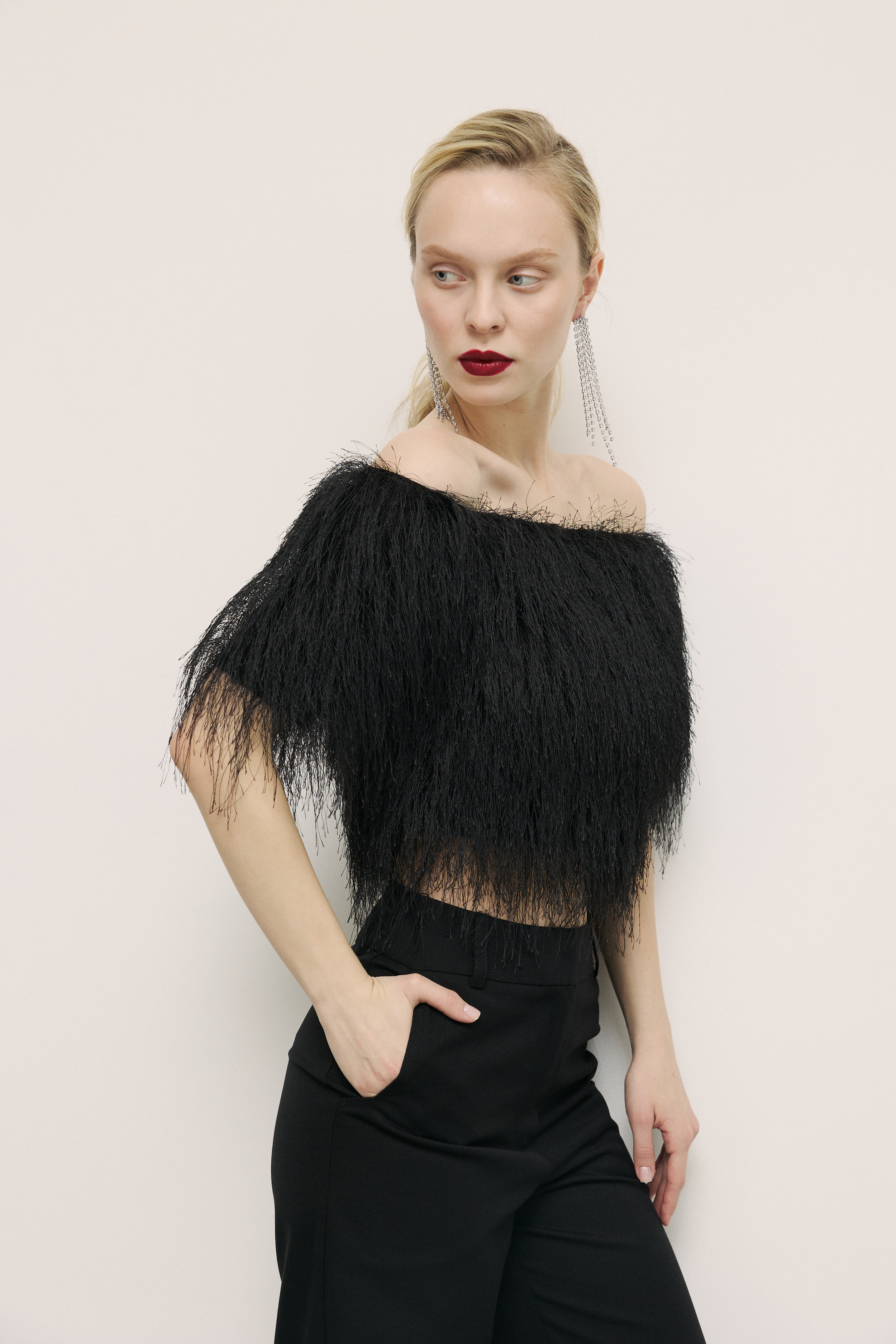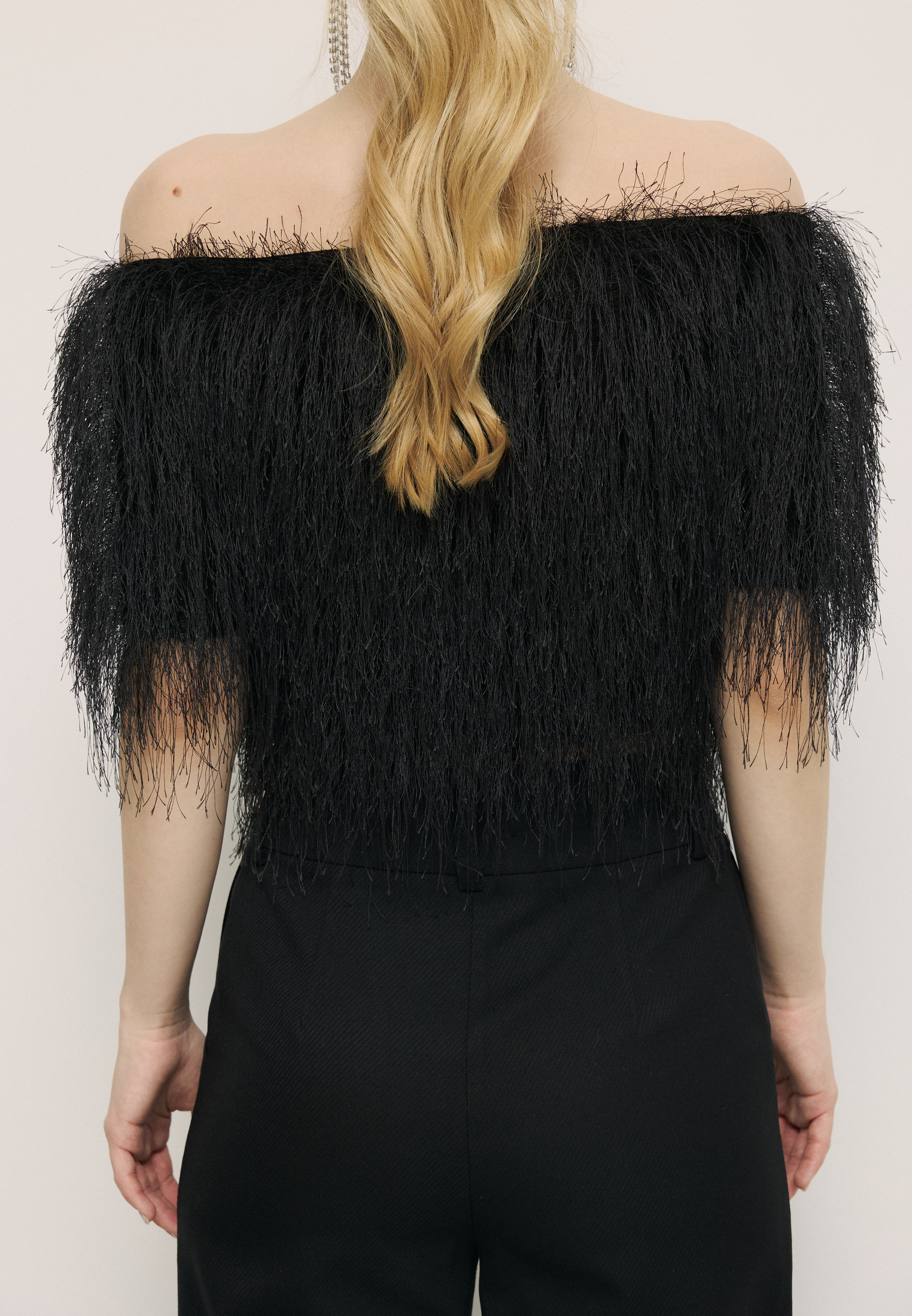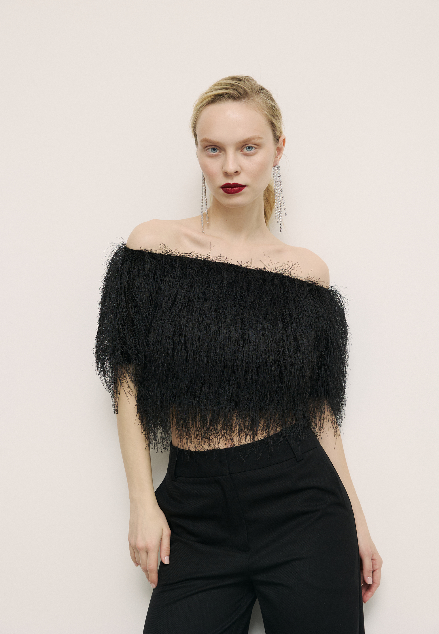 Топ с открытыми плечами из мягкого трикотажа. Мягкая резинка по верху обеспечивает идеальную и комфортную посадку. Элегантный крой, который подчеркивает линию плеч.